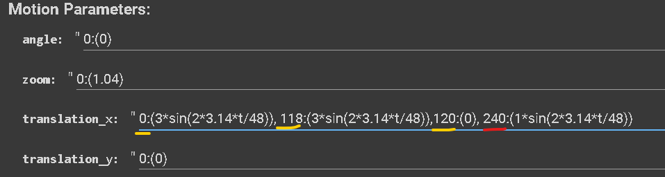 translation X - 0:(3*sin(2*3.14*t/25))